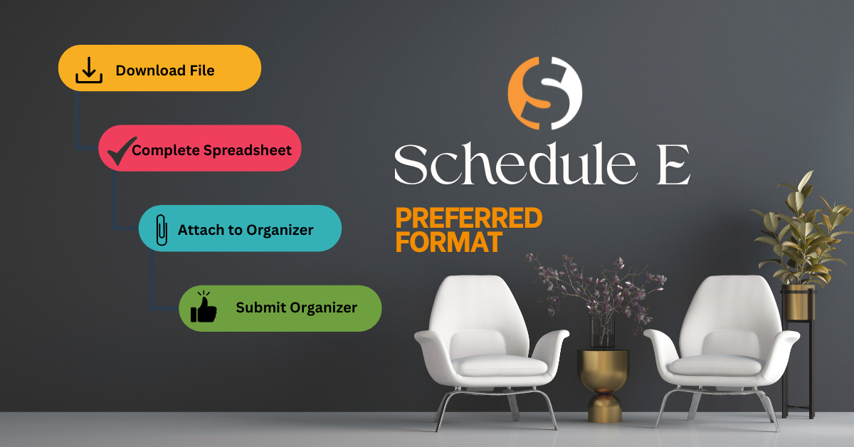 - Matches the main categories on Schedule E so we can move faster when preparing your return